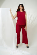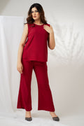 Classic Red Sleeveless Short Length Solid Co-ord Set