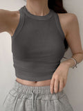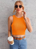 Women's Solid Color Round Neck Casual Versatile Ribbed Tank Top