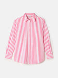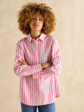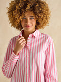 ZYNA Pink & White Stripe Longline Relaxed Fit Shirt